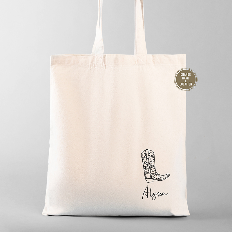 Step into Nashville’s lively spirit with our Bachelorette Party Tote Bags, the ultimate gift for your bridesmaids that's as stylish as it is practical. These totes, adorned with cowboy boots, capture the essence of a Music City celebration. Customize each bag with your bridesmaids’ names and any significant dates to make them feel part of the excitement. Whether it's for gathering essentials for a night out on Broadway or keeping souvenirs from a day at the rodeo, these tote bags are a perfect blend of Nashville charm and functional elegance.