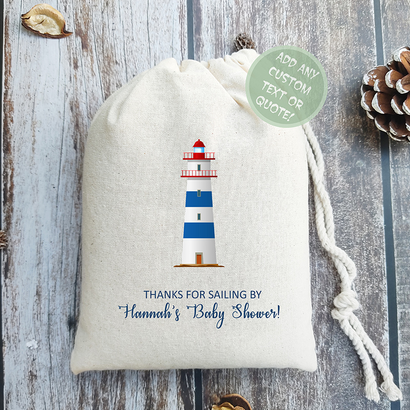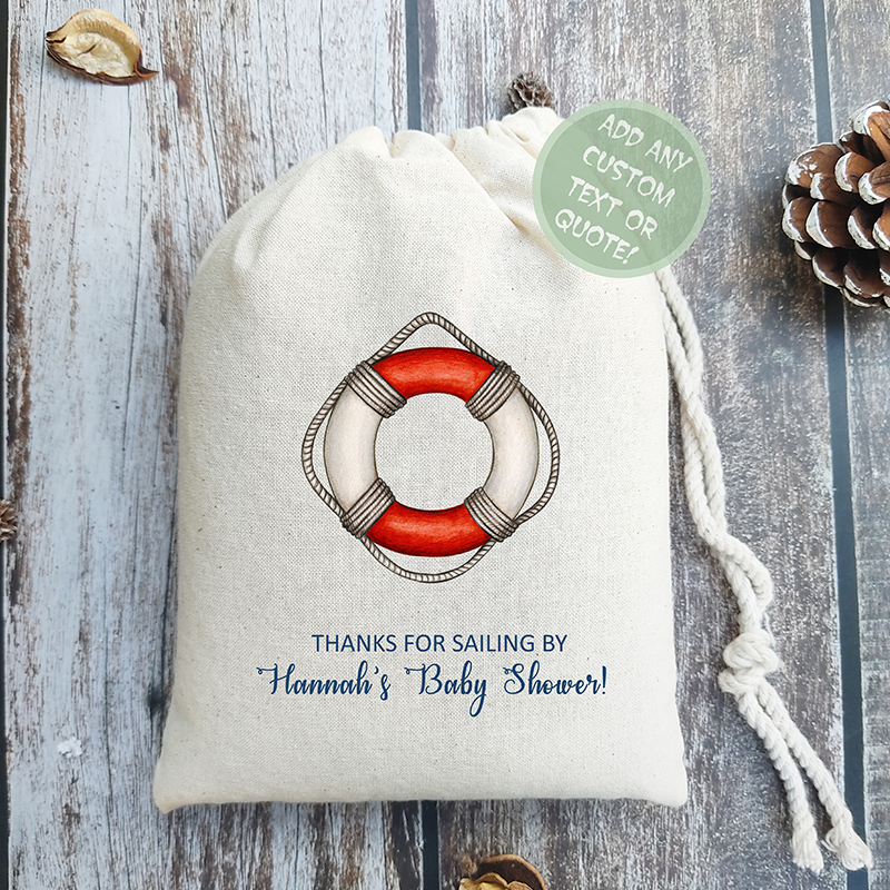 Thank your guests for 'sailing by' your celebration with our custom nautical baby shower gift bags. Designed to fit the maritime theme of your special day, these bags are perfect for holding baby shower favors. Personalize each bag with names, dates, or a special quote to make them a cherished keepsake for your guests. The classic lifebuoy design on each bag adds a touch of the sea, making them not only useful but also a delightful part of your event decor.